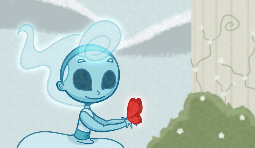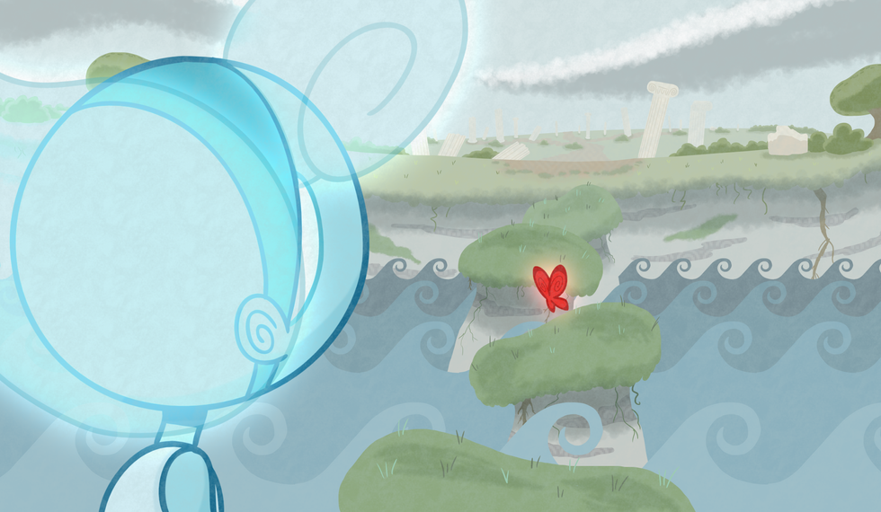 The main inspirations behind the design of Thana include Ancient Greek art and modern day cartoon designs. Thana is a friendly, bubbly child-spirit, and her design should reflect her nature. Inspirations for her shape and personality include modern day cartoon characters, including Bubbles from the Powerpuff Girls, Flame Princess from Adventure Time, and various characters from Steven Universe. Other inspirations for her design come from Ancient Greek dolls, pottery, and frescoes.